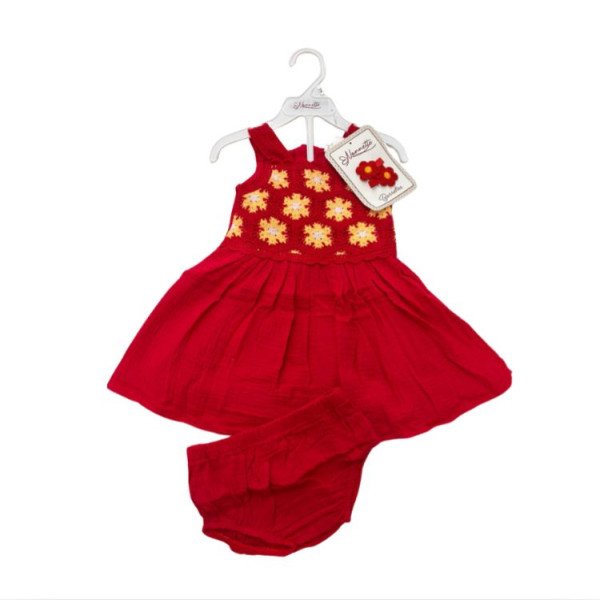 Set de dos piezas, vestido y ganchitos de flor