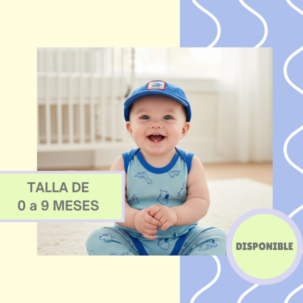 Traje de tres piezas, pantalon, body y gorra