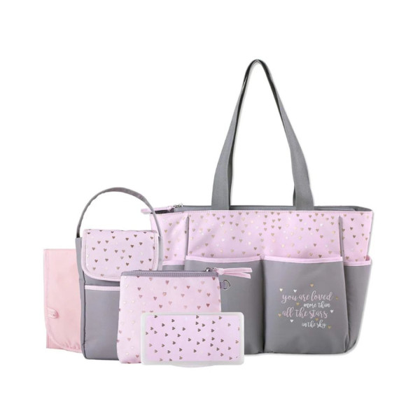 Pañalera rosa de 5 bolsos, incluye cambiador.